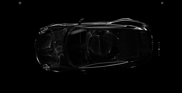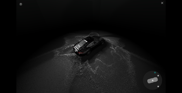 画面の右下のほうにある車体を上から眺めたようなシルエットのインターフェースはカメラの位置を表していて、様々な角度からパーティクルと車体を眺めることができるようになっています。