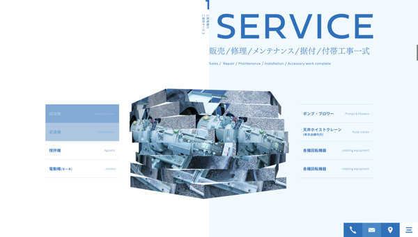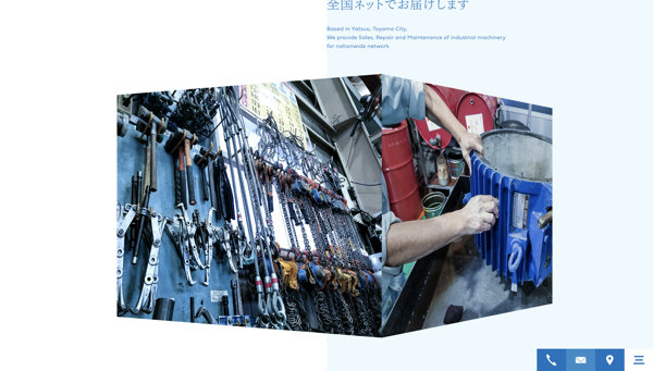 今回のサイトでは産業機械を扱う企業らしい、六角ナットをイメージしたバリエーション豊かな演出を見ることができます。