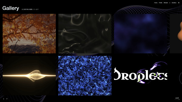 Gallery のページには、多くの WebGL を中心としたビジュアルが並びます。