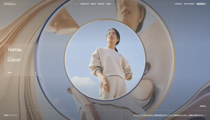 社名は LENZ&Co. ですが、どこかレンズ(Lens)に由来する部分があるのでしょうか。今回のサイトでもまるでレンズを通して世界を見ているかのような、独特なビジュアルを見ることができます。