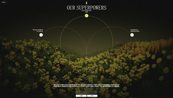 おそらく、クリエイティブチームのさまざまな役割のうちの、ブランディングという文脈に特に重点を置いたスペシャルサイト的な位置づけのものなのかなと思いますが、すごく雰囲気がよい WebGL 実装となっています。