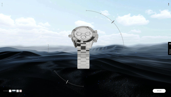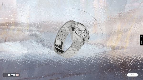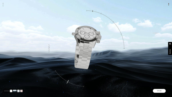 リアルな質感の腕時計と模様のついたガラスのようなトランジションが美しい ARIA のウェブサイト