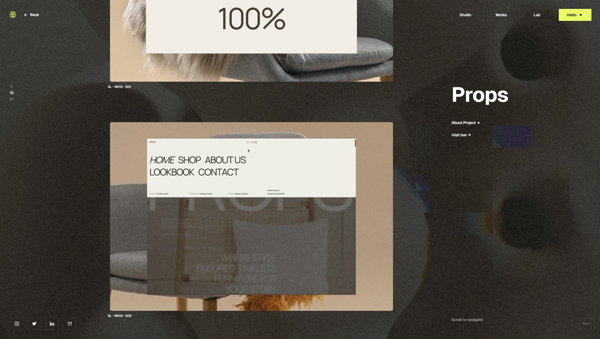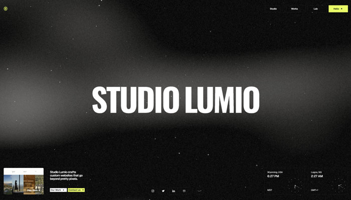 それぞれ個性の異なる演出を上手に組み合わせて構築された Studio Lumio のウェブサイト