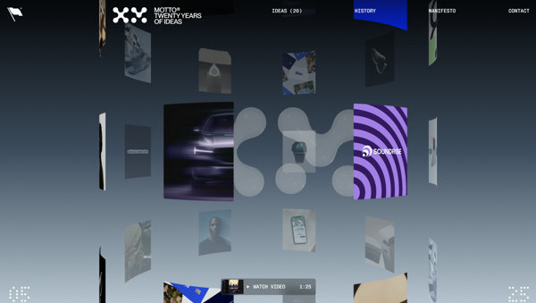自分たちの20年に及ぶ足跡をインタラクティブな 3D 表現に落とし込んだ Motto のウェブサイト