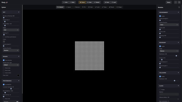 Party - Particle system and physics engine