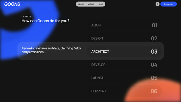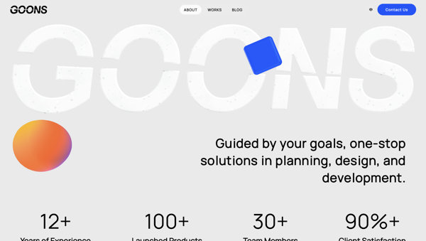 CSS も組み合わせたブラーや奥行き表現が秀逸! Goons Design のウェブサイトがおもしろい