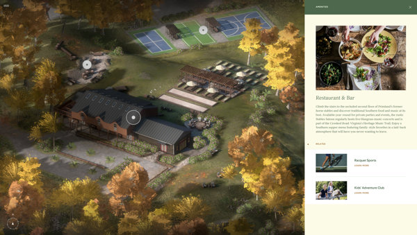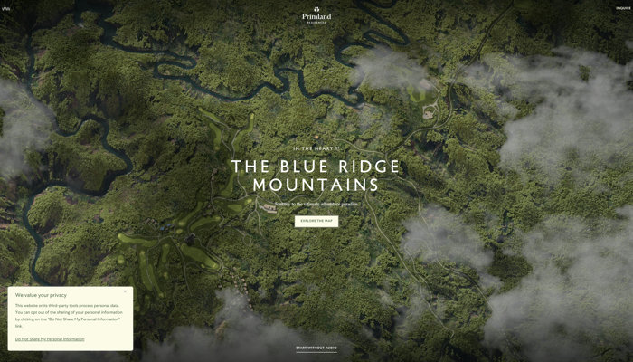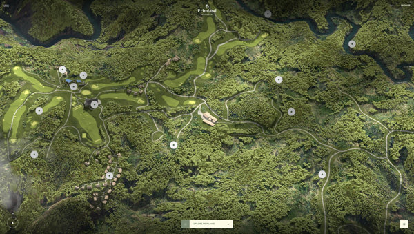 広大な自然のなかの分譲住宅とその立地を 3D でじっくり楽しめる Primland のウェブサイト
